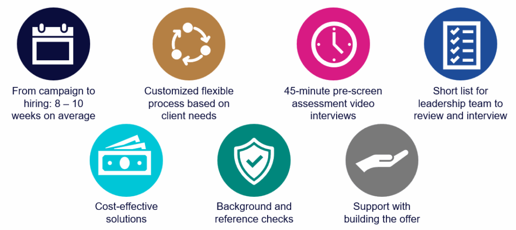 - Lengthy Search Timelines: The executive talent search process can drag on for months, causing disruptions to your organization’s performance and delays to your growth plans.